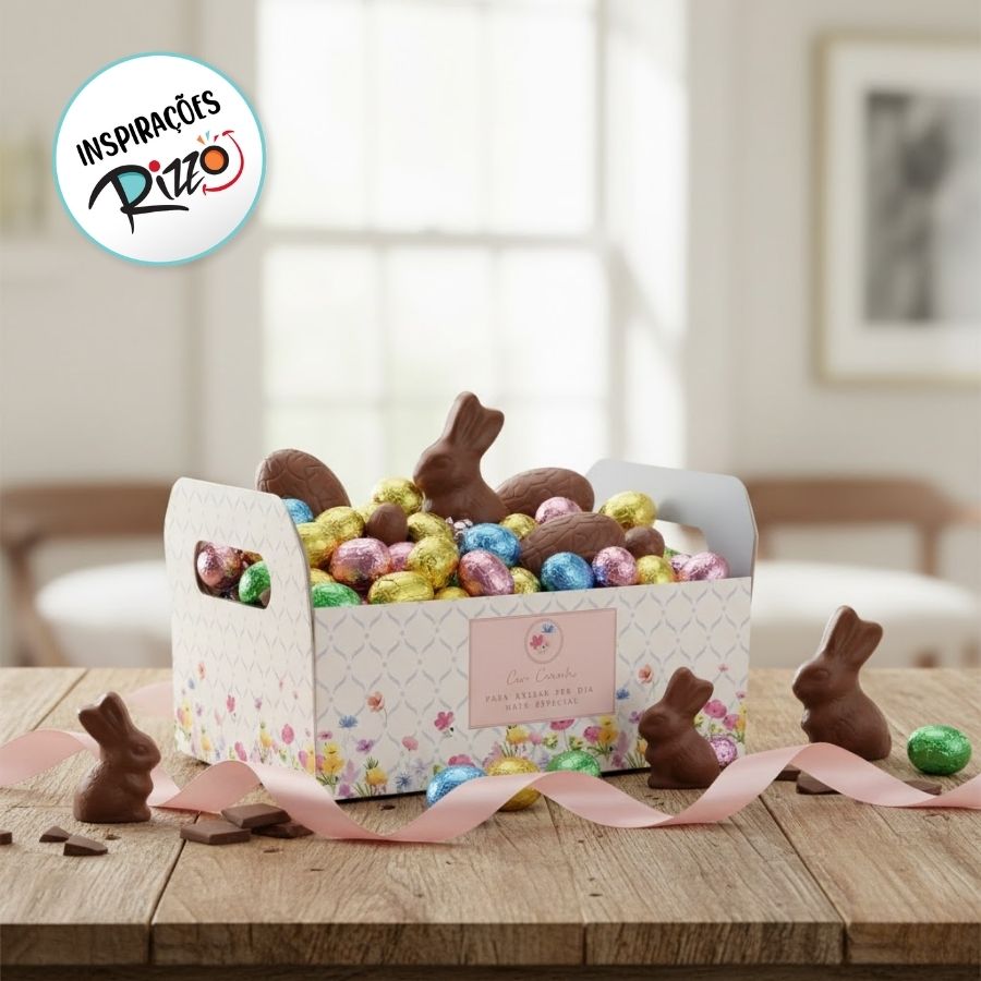 Produzido em papel cartão resistente, o caixote garante firmeza, durabilidade e um acabamento refinado, sendo ideal para Páscoa, lojas de presentes e montagem de kits personalizados. O design Florens traz delicadeza e sofisticação, permitindo personalizações com fitas, tags e embalagens decorativas.