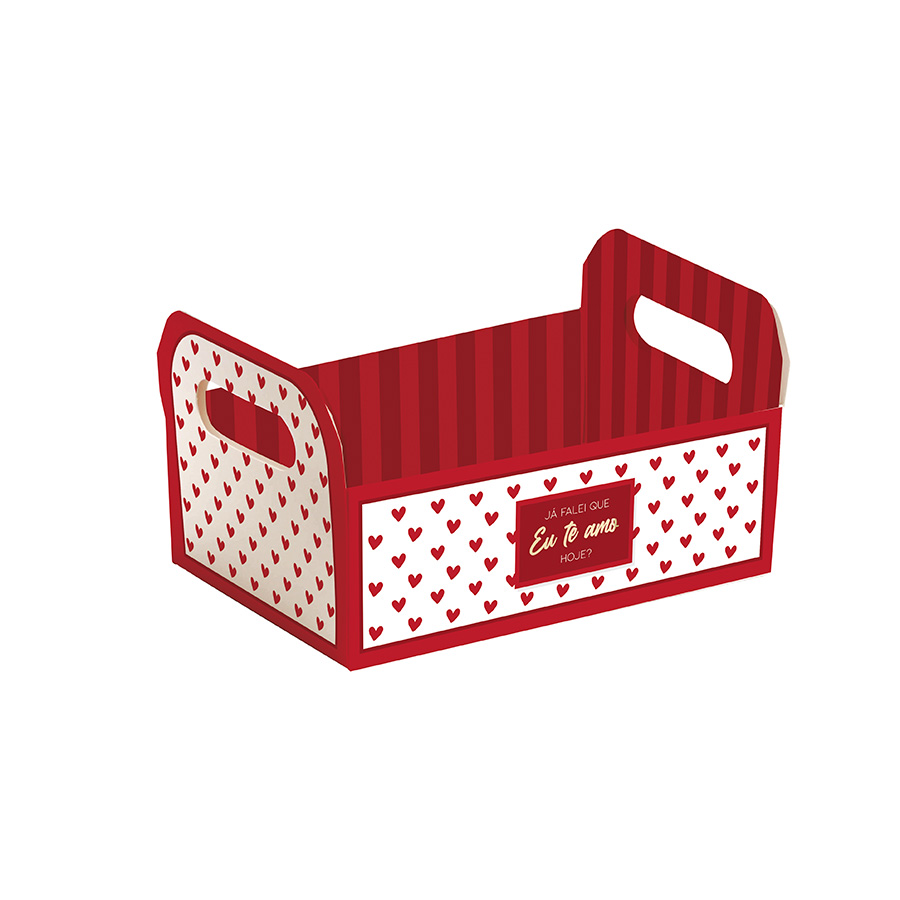 Além disso, este caixote oferece praticidade e versatilidade, podendo ser utilizado não apenas como embalagem de presente, mas também como parte da decoração, organização de objetos ou até mesmo como uma lembrança especial. Com o Caixote de Cartão com Alça Te Amo Hoje, você pode transmitir todo o seu afeto de uma forma criativa e significativa.