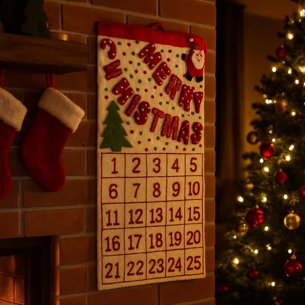 Calendário Advento de Feltro Para Pendurar - 25 Dias Até o Natal - 76x39cm - 1 unidade - Cromus - Rizzo