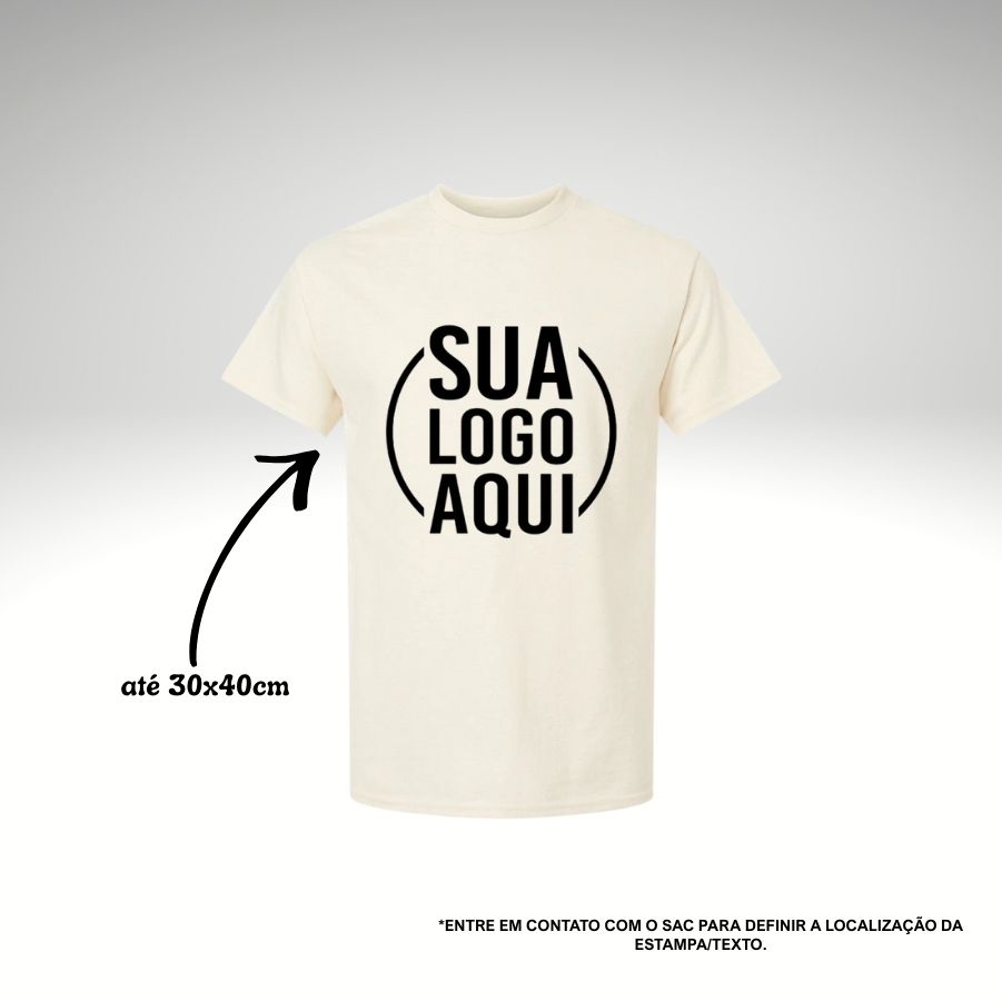 A Camiseta Off-white - 100% Algodão - Personalize com sua Logo de até 30x40cm une conforto, estilo e autenticidade, tornando-se indispensável para quem valoriza peças personalizadas e cheias de personalidade, Caso seja necessária a alteração do local da estampa, entre em contato com nosso SAC para solicitar a mudança. As fotos precisam ser enviadas em alta qualidade!