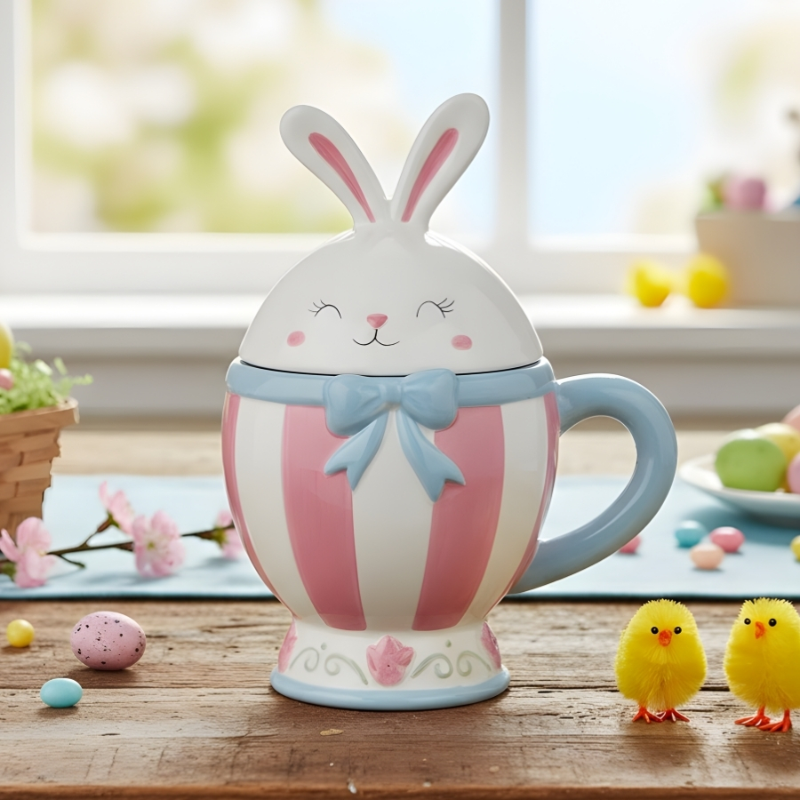 Perfeita para quem deseja oferecer um presente temático ou complementar a decoração de Páscoa com um item diferenciado, a caneca decorativa com tampa ajuda a resolver a necessidade de criar composições harmoniosas e atrativas. Ela pode ser utilizada como elemento decorativo ou para armazenar pequenos itens, doces e lembrancinhas, tornando-se uma escolha versátil para uso residencial ou comercial.