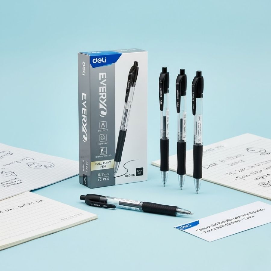 A Caneta Esferográfica Retrátil – Ponta Bullet 0,7mm Preta é ideal para escrita diária com conforto, praticidade e desempenho confiável. Sua ponta bullet de 0,7mm proporciona traços uniformes, escrita macia e excelente fluidez, sendo perfeita para anotações, estudos, uso escolar, profissional e administrativo. A tinta preta oferece ótima legibilidade e acabamento limpo em diferentes tipos de papel.