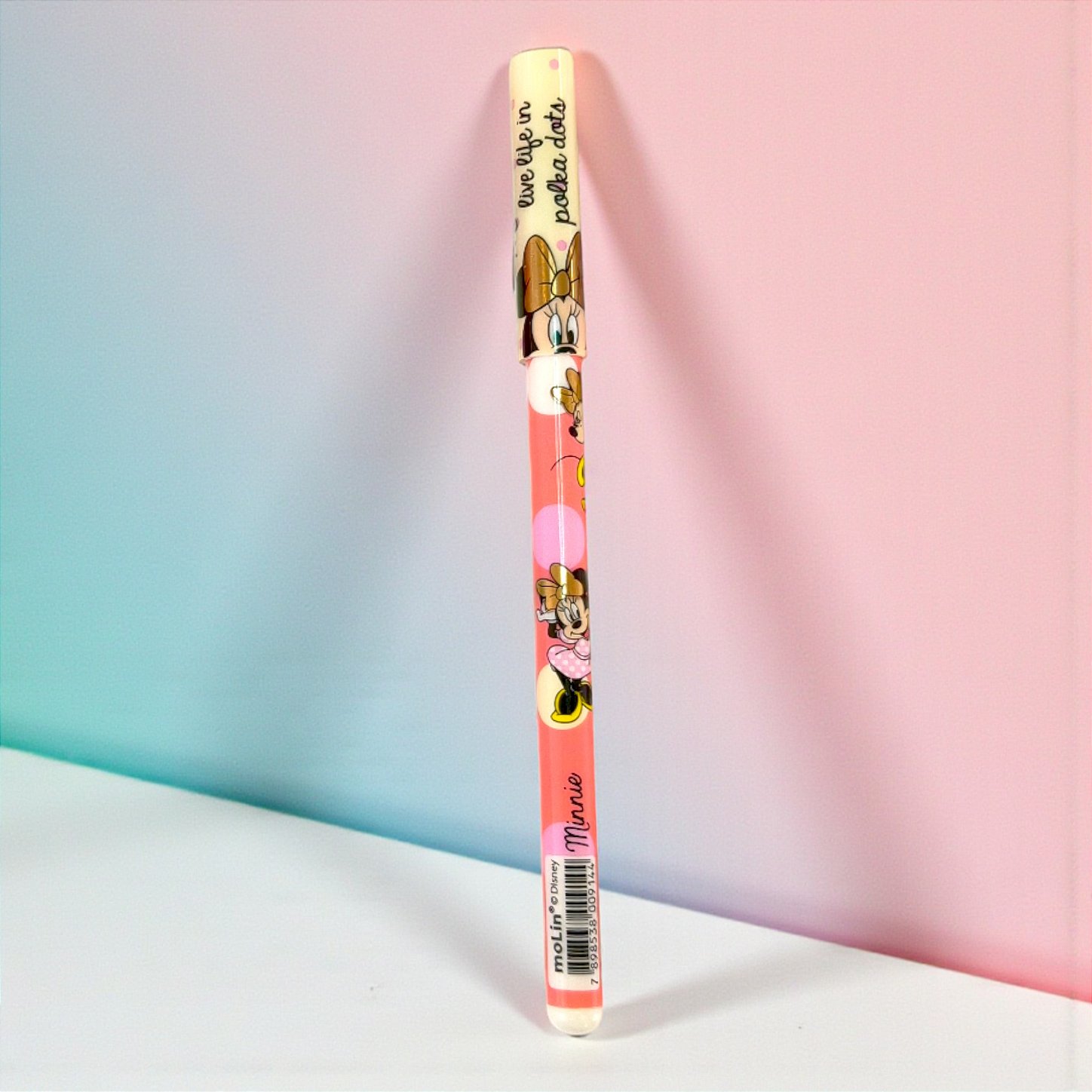 O design delicado transforma a caneta em um acessório que une praticidade e beleza, destacando-se na mesa de estudos ou no estojo. Os detalhes metalizados combinam perfeitamente com outros itens da linha Minnie, como cadernos decorados, estojos e acessórios coordenados, permitindo criar conjuntos harmoniosos e sofisticados. É uma excelente escolha para uso pessoal, presentes, brindes e lembrancinhas, valorizando a estética clássica da personagem em diferentes ocasiões.