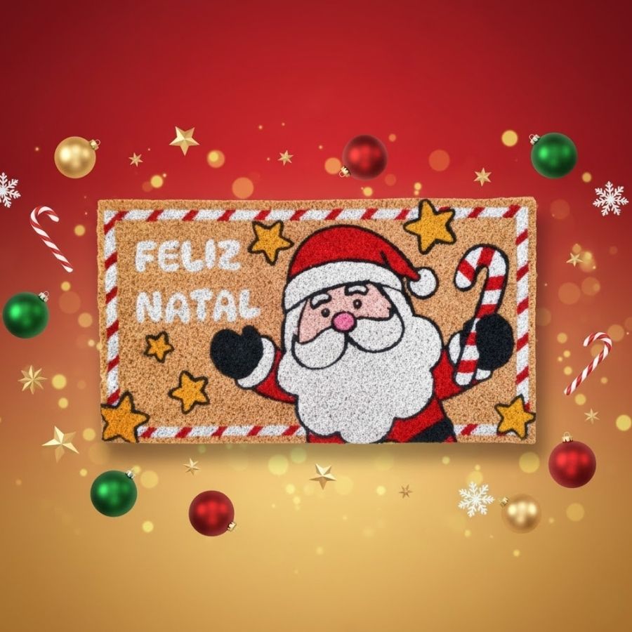 Produzido em fibra resistente, o capacho garante durabilidade, além de ajudar a conter poeira e sujeira antes de entrar no ambiente. Sua estampa vibrante combina facilmente com guirlandas, arranjos, luzes e demais peças temáticas, criando uma entrada harmoniosa e cheia de charme. Um item funcional e decorativo que valoriza qualquer composição natalina.