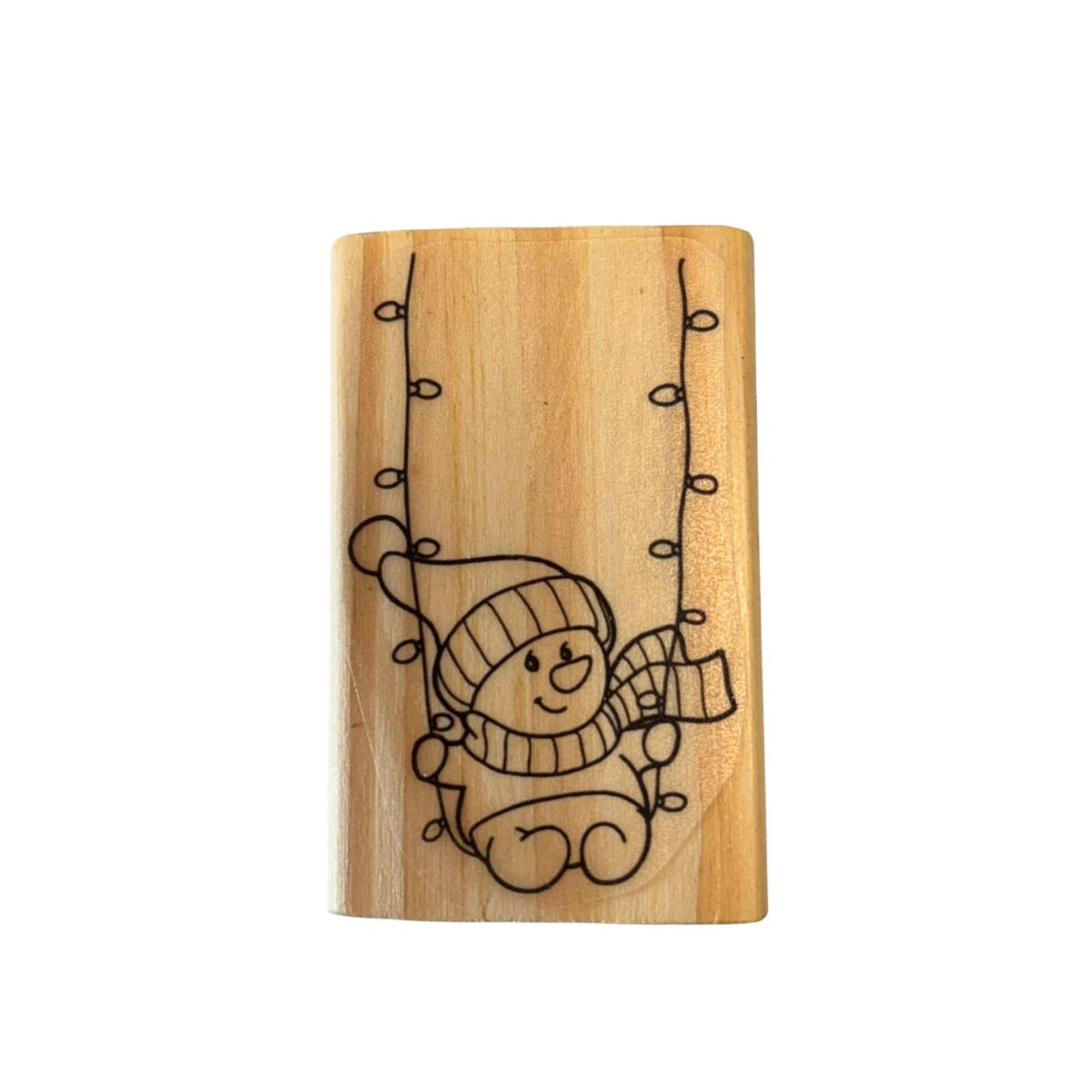 O Carimbo de Madeira Artesana – Boneco de Neve no Balanço traz uma cena encantadora que combina delicadeza e clima festivo: um boneco de neve sorridente balançando suavemente, perfeito para composições natalinas fofas e artesanais. O desenho possui traços limpos e detalhes charmosos, garantindo uma impressão nítida que valoriza cartões, tags, embalagens, convites e projetos de scrapbooking. Produzido em madeira resistente e borracha de alta qualidade, é ideal para quem busca criar peças únicas, com personalidade e atmosfera de Natal acolhedora.