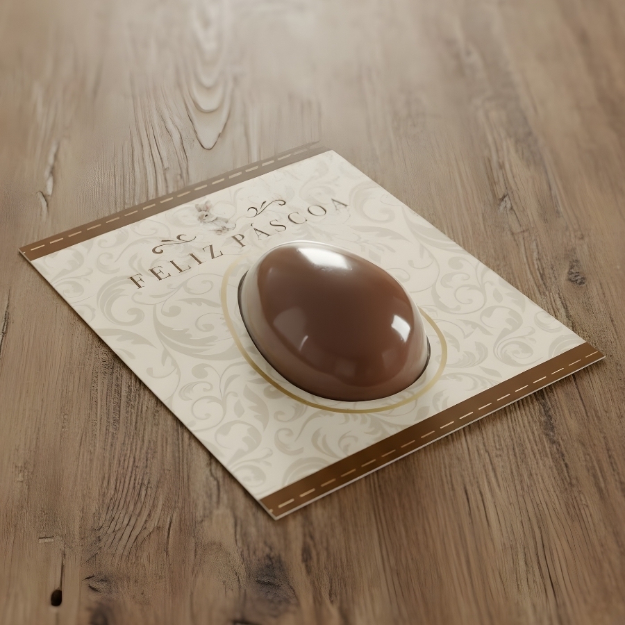 Cartão para ovinho de Páscoa com estampa Classique Bunny. Possui medidas aproximadas de 11x13cm, sendo indicado para uso decorativo e complementação de embalagens pascais.