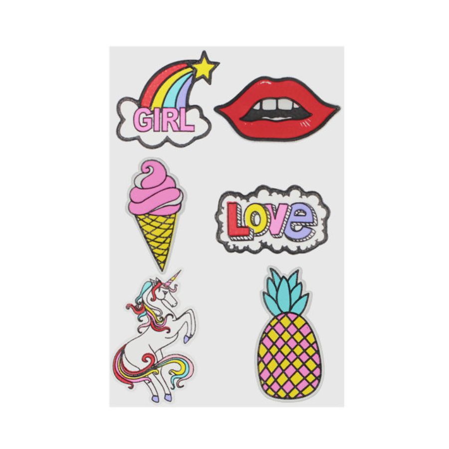 Patchs para malas, jaquetas ou sacos, contém: Unicórnio, Abacaxi, Sorvete, Boca, Arco íris, "Love"