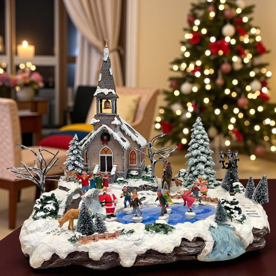 Ideal para salas, aparadores, vitrines e composições de vilarejos natalinos, este cenário decorativo combina som, luz e movimento para oferecer uma experiência visual e sonora encantadora. Perfeito para quem deseja trazer significado, beleza e brilho à decoração de Natal.