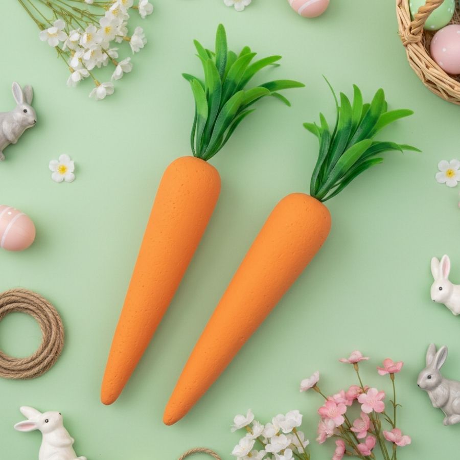 As Cenouras Decorativas Lisa são itens versáteis e charmosos para composições temáticas de Páscoa, trazendo toque lúdico e delicado à decoração. Com acabamento liso e cores suaves, são perfeitas para complementar mesas, cestas, vitrines ou arranjos sem sobrecarregar o visual.