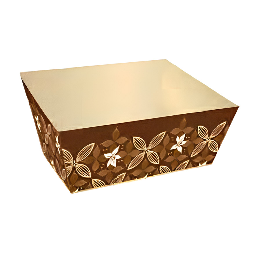 A Cesta de Cartão Trapézio - Cacau é uma escolha encantadora para presentear nesta Páscoa. Com dimensões de 19x13x8cm e feita de papel cartão, sua forma trapezoidal confere um toque de elegância ao seu design. A estampa de frutas de cacau formando flores por toda a cesta cria uma atmosfera de doçura e exuberância, tornando-a uma adição encantadora para a celebração festiva.