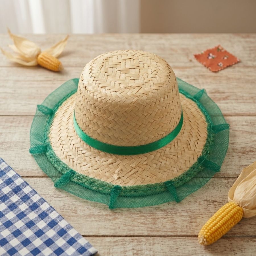 Versátil e leve, o chapéu pode ser utilizado em fantasias, lembrancinhas, vitrines e composições decorativas. Com tamanho de 19x30cm, é fácil de adaptar em diferentes usos, além de permitir personalizações com fitas, flores e outros enfeites. O acabamento em renda traz um toque sofisticado, ideal para quem busca unir o estilo caipira com um visual mais delicado.