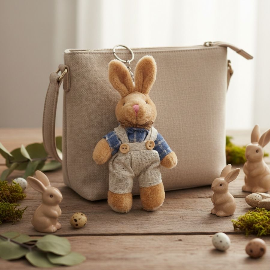 Charmoso, acolhedor e com um toque campestre sofisticado, o Chaveiro Coelho de Pelúcia Bege de Macacão e Blusa Xadrez Azul conquista pelo visual clássico e atemporal. A padronagem xadrez em tom azul traz equilíbrio entre delicadeza e estilo, evocando aconchego, carinho e uma estética elegante que valoriza detalhes e cria conexões afetivas em cada composição.