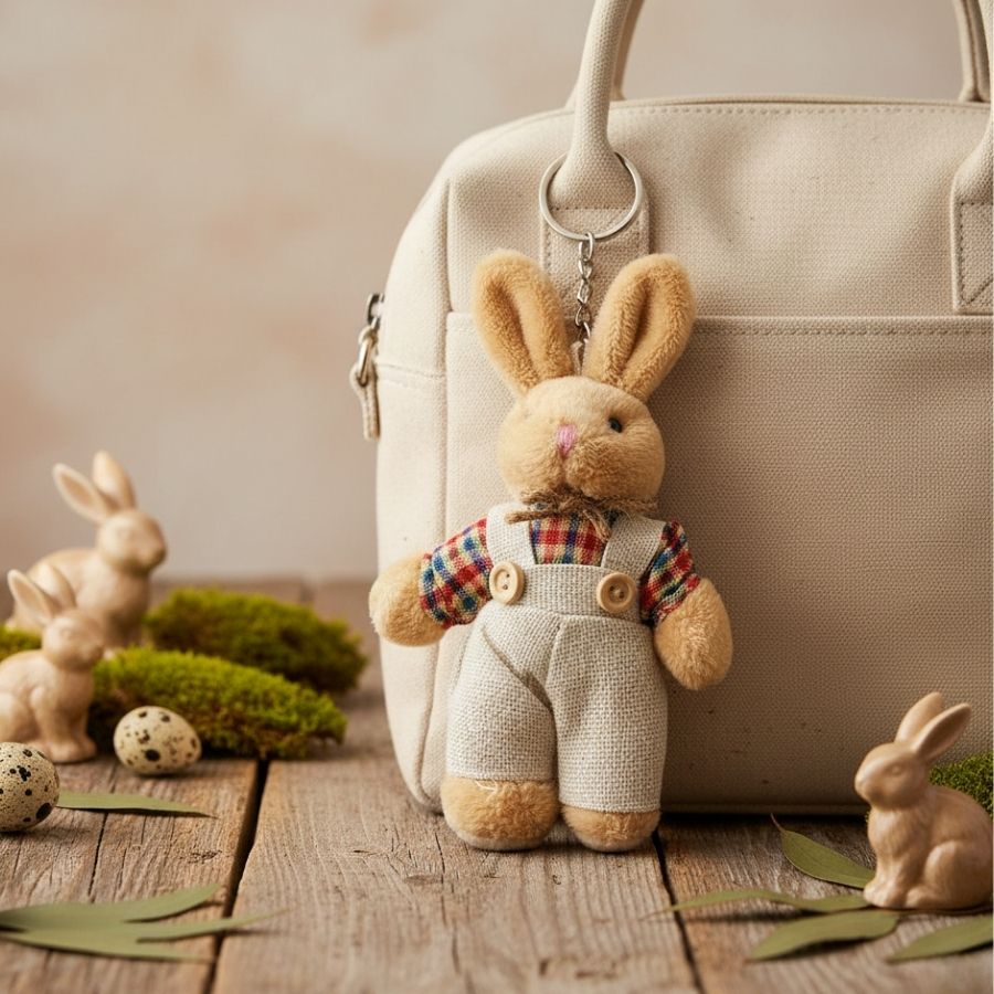Aconchegante, clássico e cheio de personalidade, o Chaveiro Coelho de Pelúcia Bege de Macacão e Blusa Xadrez Vermelho e Verde traz um charme tradicional que remete ao estilo campestre e afetivo. A combinação de cores cria um visual marcante e acolhedor, ideal para composições que valorizam detalhes artesanais, elegância discreta e uma atmosfera calorosa em decorações e presentes.