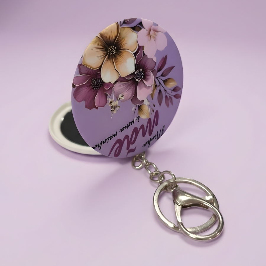 Na sofisticada cor roxa, esse chaveiro transmite personalidade e delicadeza ao mesmo tempo. Compacto e prático, pode ser preso às chaves, bolsas ou mochilas, garantindo um espelho sempre à mão quando necessário. Uma lembrança funcional e simbólica para surpreender em datas especiais ou demonstrar amor em qualquer ocasião.