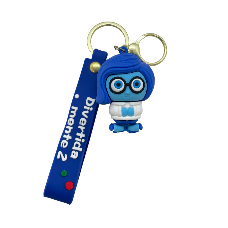 Chaveiro personagem Tristeza, com tira azul escrita ''Divertidamente 2''