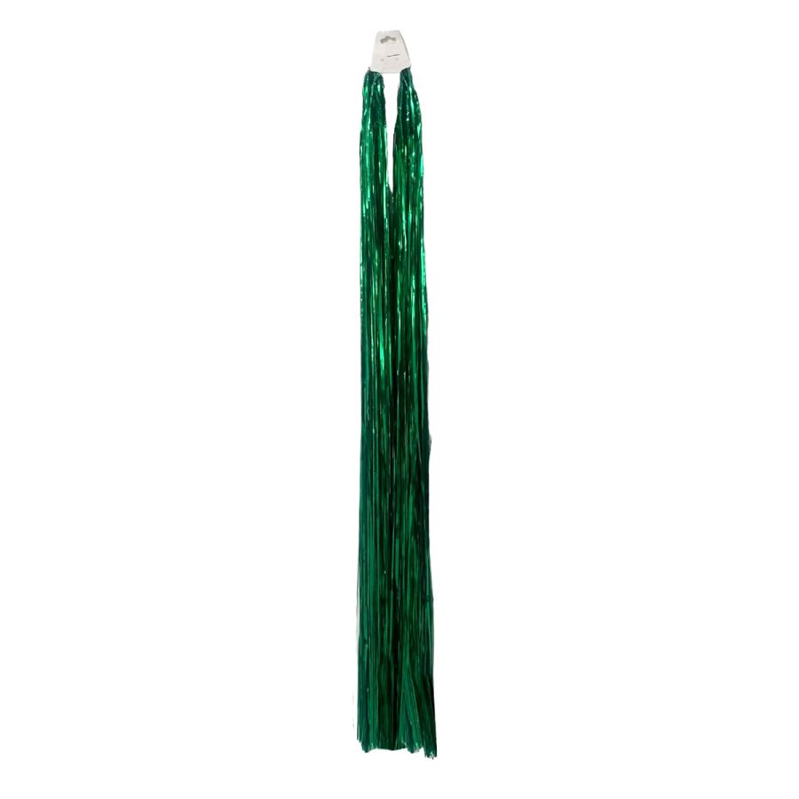 Chicote metalizado com franjas verdes, perfeito para fantasias e festas de Carnaval. Tamanho 80cm.