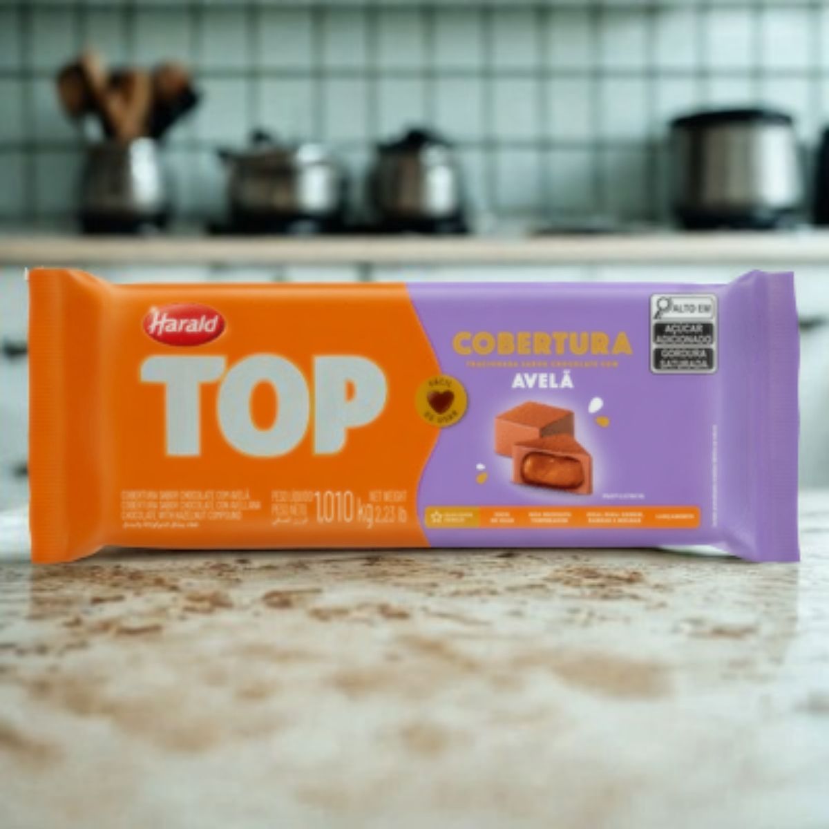 TOP é uma cobertura sabor chocolate com avelã, testada e aprovada pelos chefs confeiteiros, feita com tecnologia de ponta. É ideal para moldar e banhar trufas, bombons, pães de mel, ovos de Páscoa, barrinhas e muito mais.