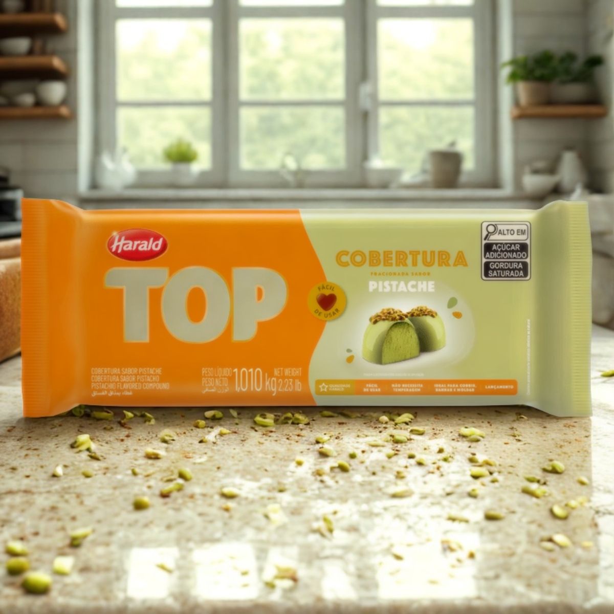 TOP é a cobertura sabor chocolate com pistache, desenvolvida com tecnologia de ponta e aprovada por chefs confeiteiros. Sua textura cremosa e sabor refinado tornam o produto ideal para moldar e banhar trufas, bombons, pães de mel, ovos de Páscoa, barrinhas e diversas sobremesas.