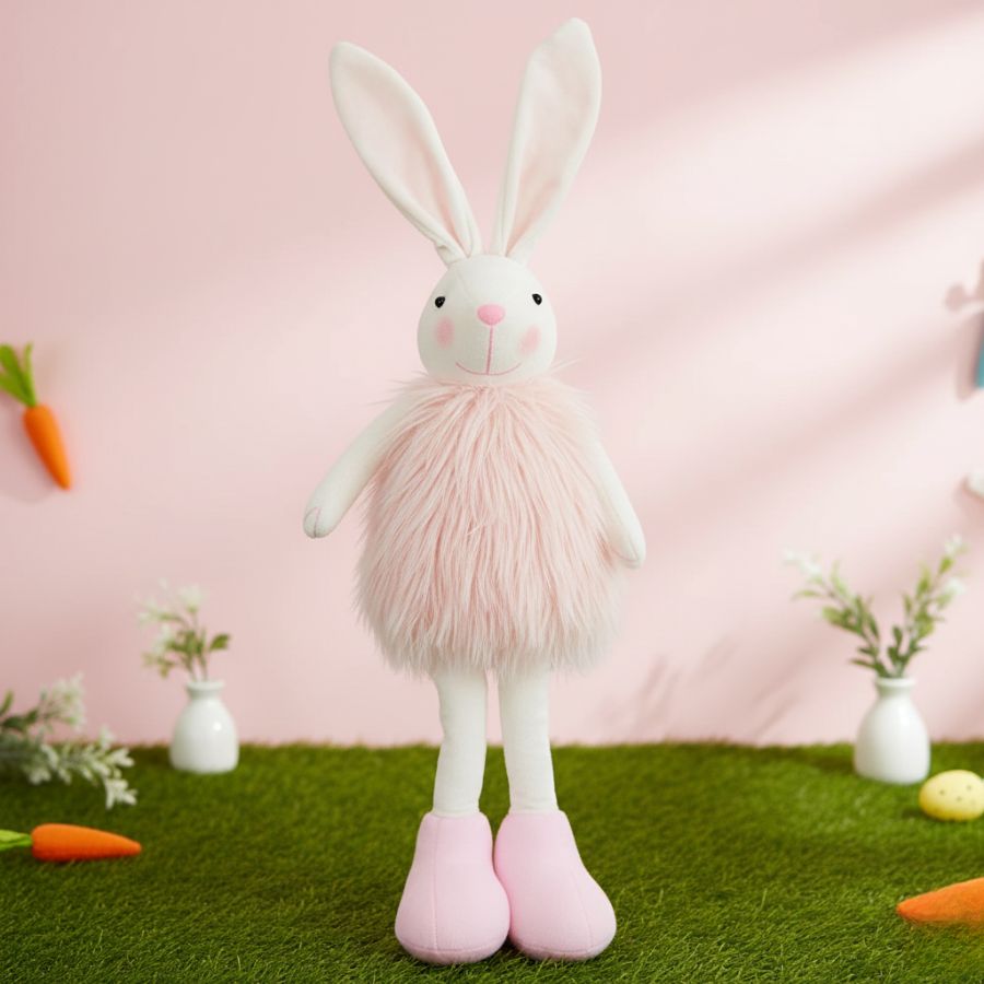 Sua postura em pé confere elegância à peça, enquanto o visual delicado remete à doçura e ao simbolismo do coelho, associado à renovação, fertilidade e celebração. É uma excelente escolha para decorações de Páscoa, quartos infantis, espaços temáticos ou composições sazonais que pedem um elemento decorativo acolhedor e feminino.