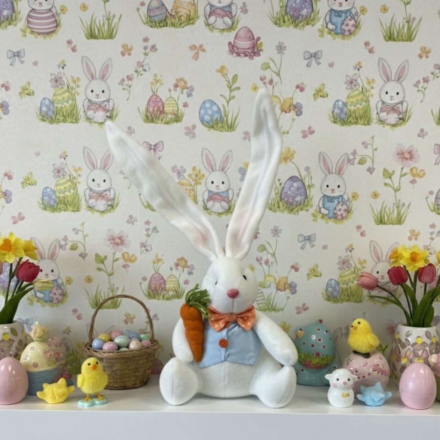 Coelho de pelúcia decorativo com grandes orelhas