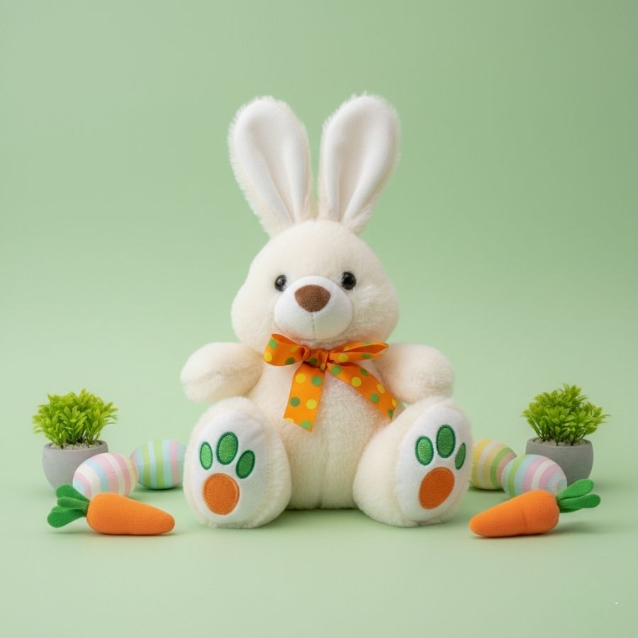 O diferencial do Coelho de Pelúcia com Gravata de Bolinhas está na gravata decorativa com estampa de bolinhas, que confere um visual alegre e sofisticado à peça. A pelúcia de toque suave proporciona conforto visual e sensorial, enquanto o tamanho compacto facilita combinações com outros itens decorativos, embalagens presenteáveis e arranjos personalizados. Versátil e bem acabado, é uma excelente escolha para quem busca valorizar a apresentação final e oferecer um produto com aspecto cuidadoso, profissional e atrativo.