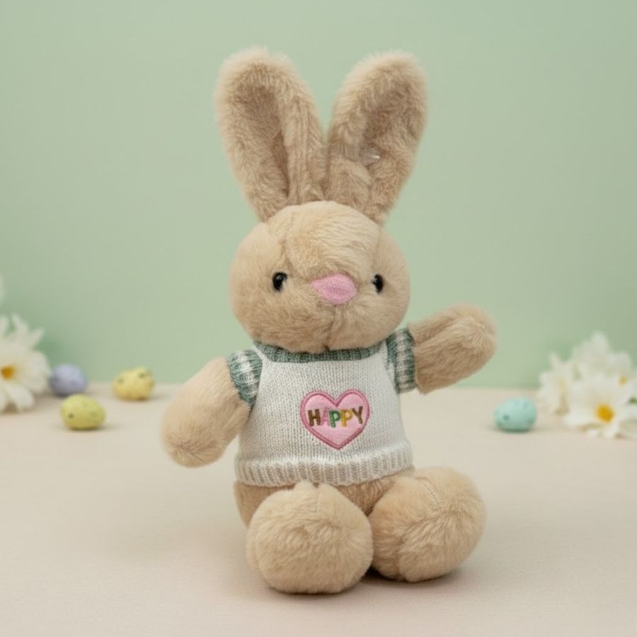 Aconchegante, lúdico e cheio de charme, o Coelho de Pelúcia Bege com Blusa “Happy” (Branco e Verde) transmite toda a alegria e ternura da Páscoa. A blusa colorida com detalhe divertido reforça o clima acolhedor e infantil, tornando qualquer ambiente mais encantador e transformando a decoração em um cenário pascal alegre e cheio de fofura.