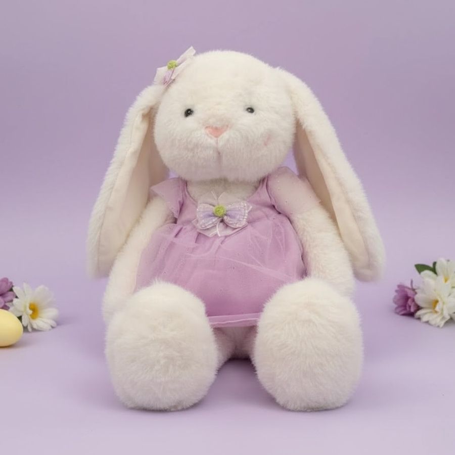 Coelho de Pelúcia Branco de Vestido - Roxo - 62x30x17cm