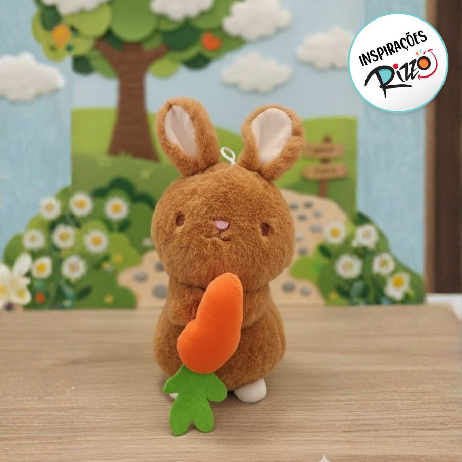 O Coelho de Pelúcia Marrom Segurando Cenoura é um item decorativo macio e encantador, com tamanho de 27x11cm, ideal para decoração de Páscoa e ambientes internos.