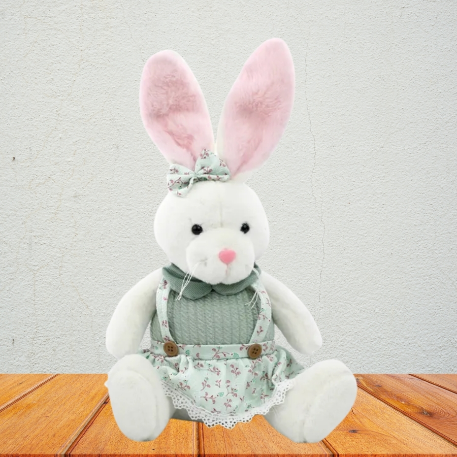 Perfeito para colecionadores, artesãos e lojistas que buscam uma solução prática e estilosa para decoração temática, o coelho resolve a necessidade de criar cenários de Páscoa visualmente atrativos. Com dimensões de 23x15x33cm, ele é fácil de posicionar em mesas, prateleiras ou exposições, enquanto o suspensório e a saia verde adicionam um toque sofisticado e divertido à peça.