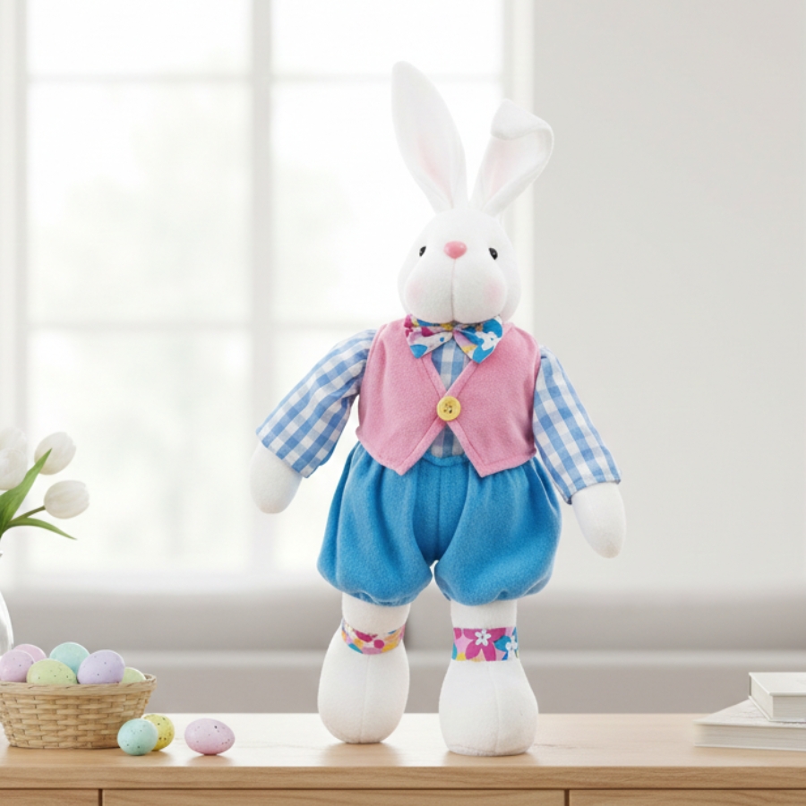 Coelho Decorativo Em Pé Colete Rosa/Azul P - 1 unidade - Cromus - Rizzo