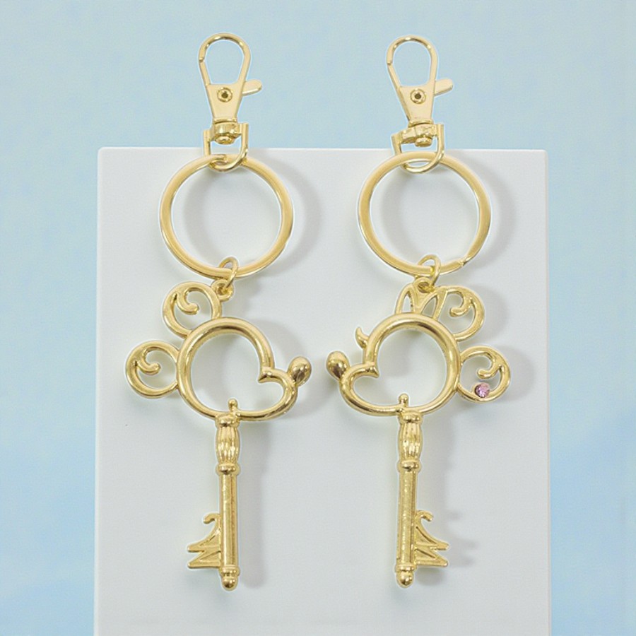 O Conjunto Chaveiro com Mickey Disney e Minnie Disney apresenta uma proposta elegante e simbólica dentro da categoria de chaveiros decorativos e utilidades pessoais. Com design em formato de chave na cor dourada, o produto chama atenção pelo visual marcante e pelo conceito criativo, unindo funcionalidade e beleza em um único acessório. Cada chaveiro possui silhueta vazada, sendo um inspirado no Mickey Disney e outro na Minnie Disney, criando uma composição harmônica e temática. O tamanho de 7cm permite uso prático no dia a dia, enquanto o acabamento metálico dourado valoriza o design e torna o conjunto ideal para compor chaves, bolsas, mochilas ou itens decorativos.