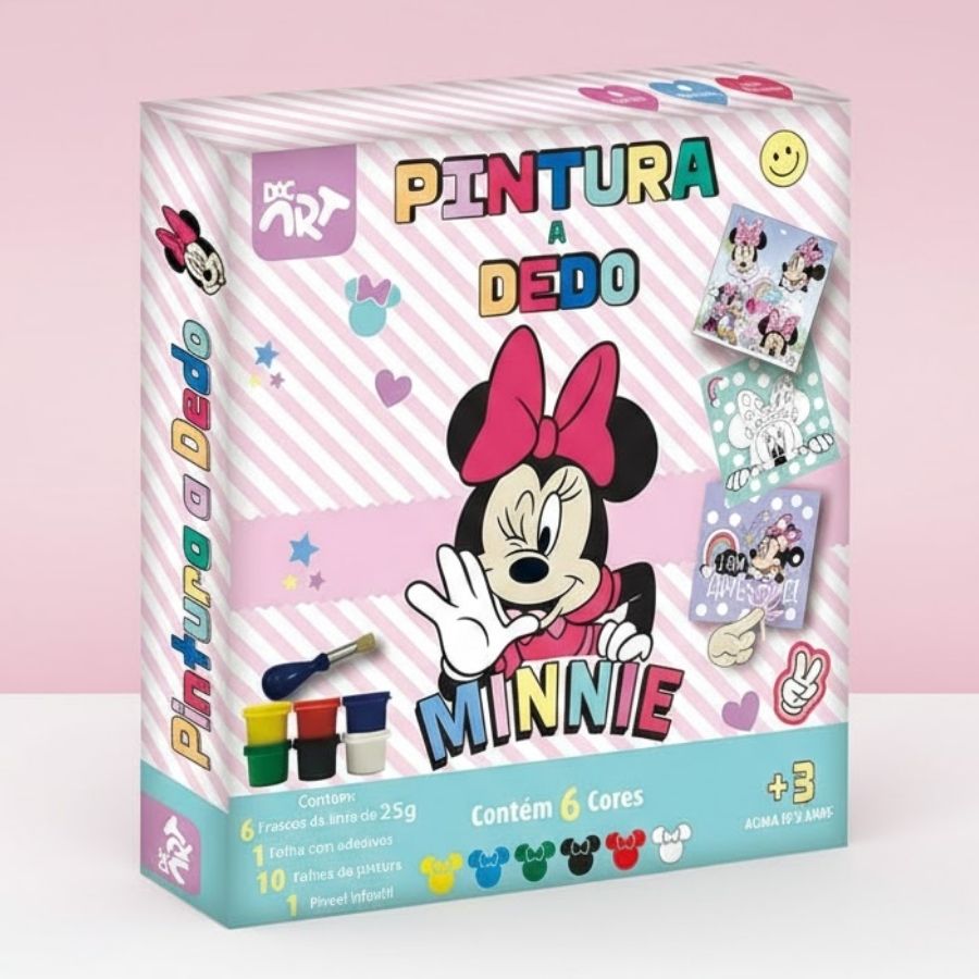 O Conjunto de Pintura a Dedo – Minnie Mouse Disney é um Produto Licenciado Disney criado para tornar os momentos de arte mais alegres, criativos e cheios de cor. Com 6 cores vibrantes, o conjunto incentiva a pintura a dedo como uma atividade divertida, permitindo que as crianças explorem a imaginação, criem formas livres e experimentem combinações de cores. Inspirado no universo encantador da Minnie Mouse Disney, o kit transforma a pintura em uma experiência lúdica, perfeita para atividades em casa, na escola ou em momentos especiais em família.