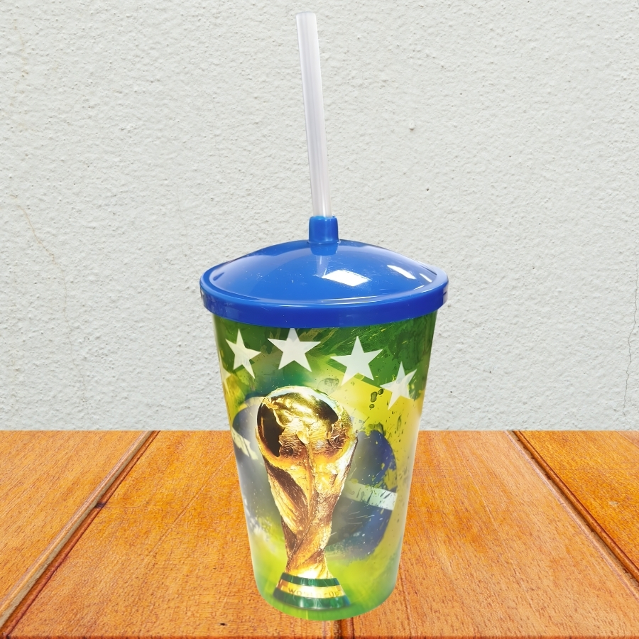 A tampa firme e o canudo fixo tornam o uso seguro, evitando respingos e facilitando o transporte. Sua capacidade de 700ml atende quem prefere carregar um volume maior de bebida, sendo ideal para água, sucos, chás gelados, vitaminas e bebidas refrescantes. O modelo também se destaca em eventos temáticos, celebrações esportivas e composições decorativas nas cores do Brasil.