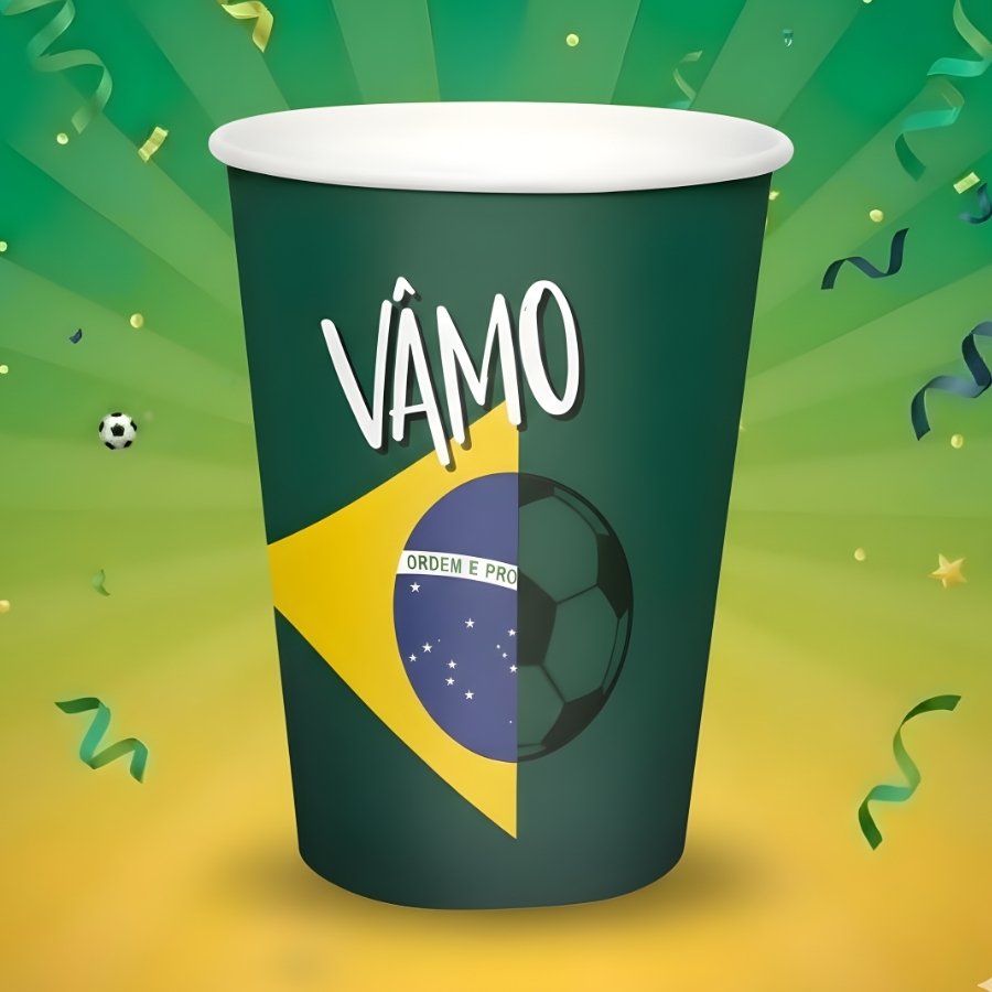 Com capacidade de 330ml, esse copo de papel é indicado para servir bebidas frias ou quentes, resolvendo a necessidade de um item descartável funcional e decorativo. É perfeito para festas da Copa do Mundo, aniversários temáticos, eventos escolares e confraternizações, unindo praticidade e identidade brasileira.