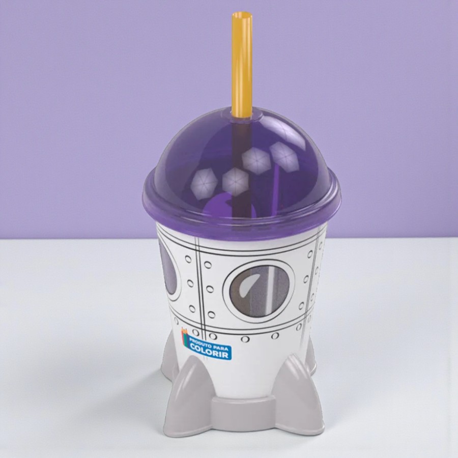 Copo Foguete com Tampa e Canudo com capacidade de 280ml é um modelo shake criativo em formato de foguete, ideal para deixar o momento das bebidas mais divertido. Possui tampa modelo bolha e canudo reutilizável, com estampa de astronauta que estimula a imaginação e o encanto pelo espaço. Um item funcional e cheio de beleza, perfeito para o dia a dia, passeios ou festas com tema espacial.