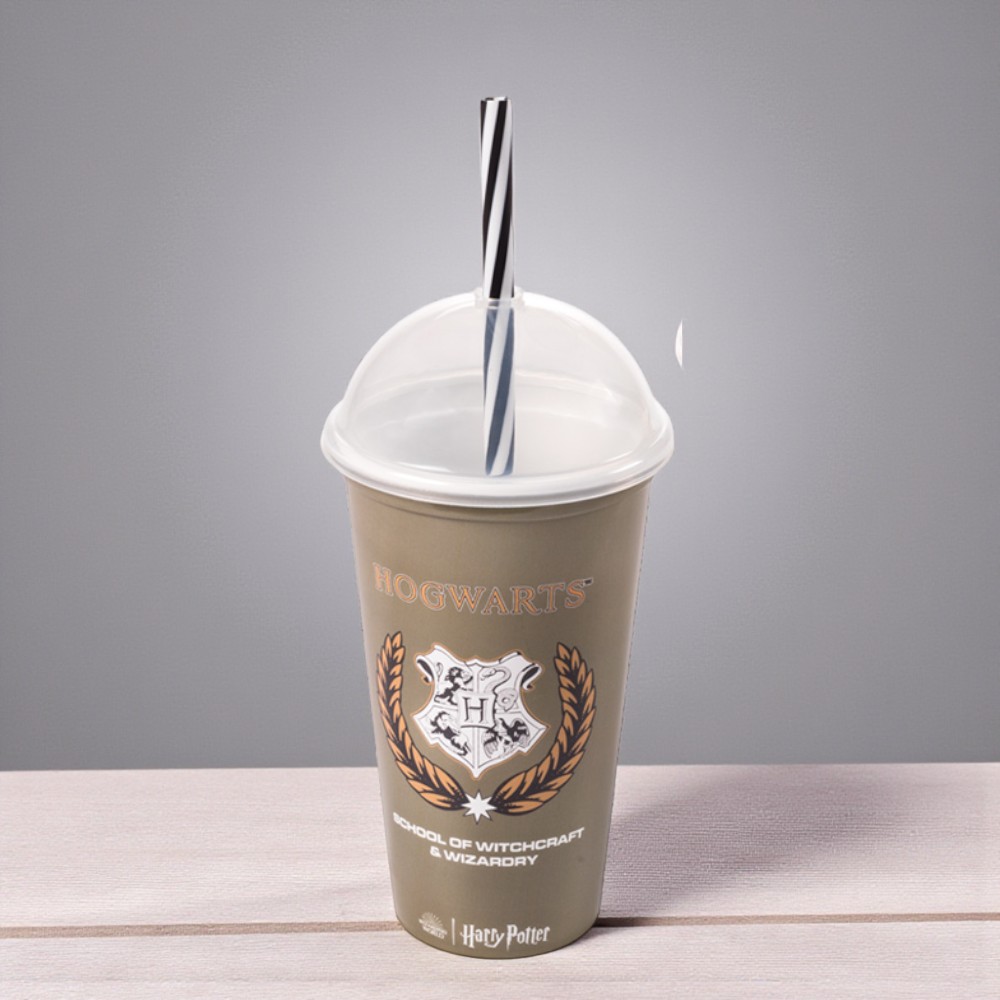 Copo com tampa e canudo, inspirado em Harry Potter.