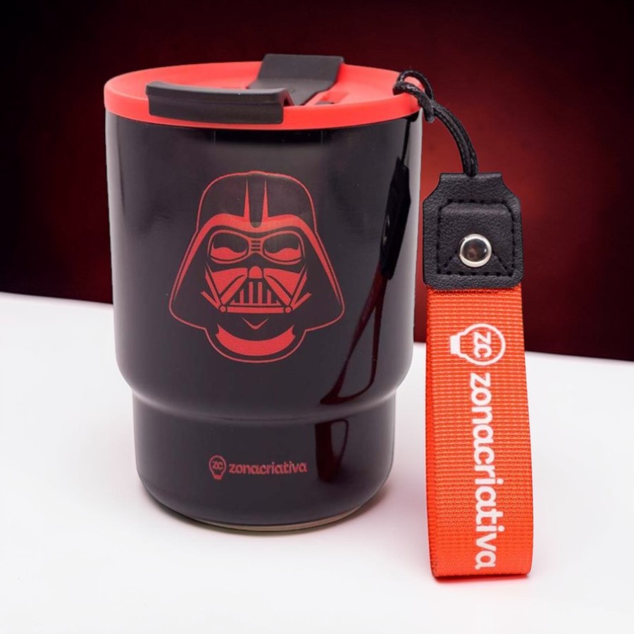 Copo térmico com tampa e alça inspirado em Darth Vader Star Wars.