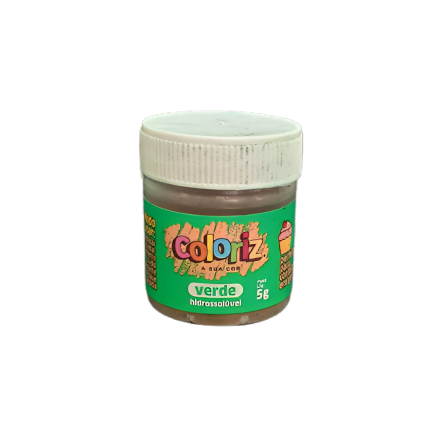 Corante alimentício em pó hidrossolúvel, na cor verde. Modo de usar: aplicar aproximadamente 1% do corante na base desejada.
