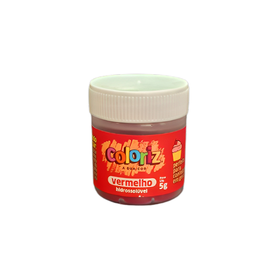 Corante alimentício em pó hidrossolúvel, na cor vermelho. Modo de usar: aplicar aproximadamente 1% do corante na base desejada.