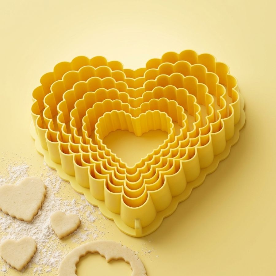 O Cortador Coração Babado - 06 unidades é perfeito para quem deseja criar doces delicados, românticos e com acabamento diferenciado. Com bordas em formato de babado, ele transforma cortes simples em detalhes sofisticados, sendo ideal para biscoitos, bolos, cupcakes e decorações com pasta americana. Indicado para Dia dos Namorados, Dia das Mães, aniversários e produções personalizadas, esse kit permite criar composições encantadoras que valorizam o visual e aumentam o apelo dos seus produtos.