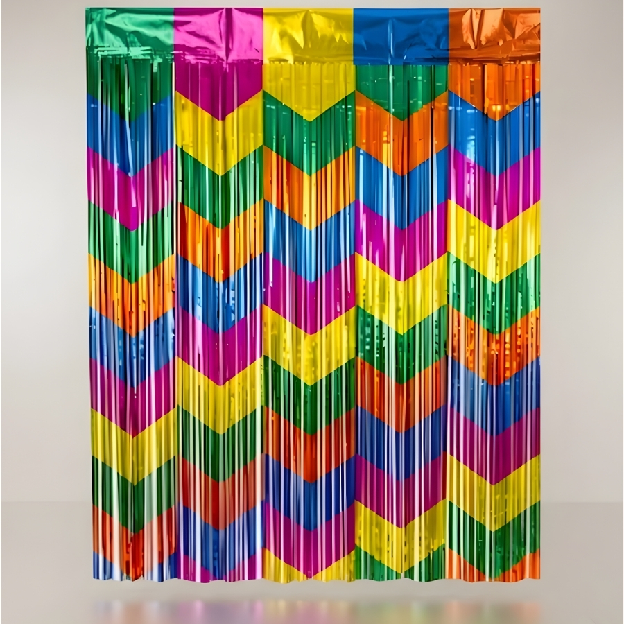 A Cortina Decorativa Metalizada Colorida Junina é ideal para transformar o ambiente e destacar a decoração de festas temáticas. Com acabamento metalizado e cores vibrantes, ela cria um efeito visual chamativo, perfeito para compor cenários alegres e festivos típicos de arraiais.