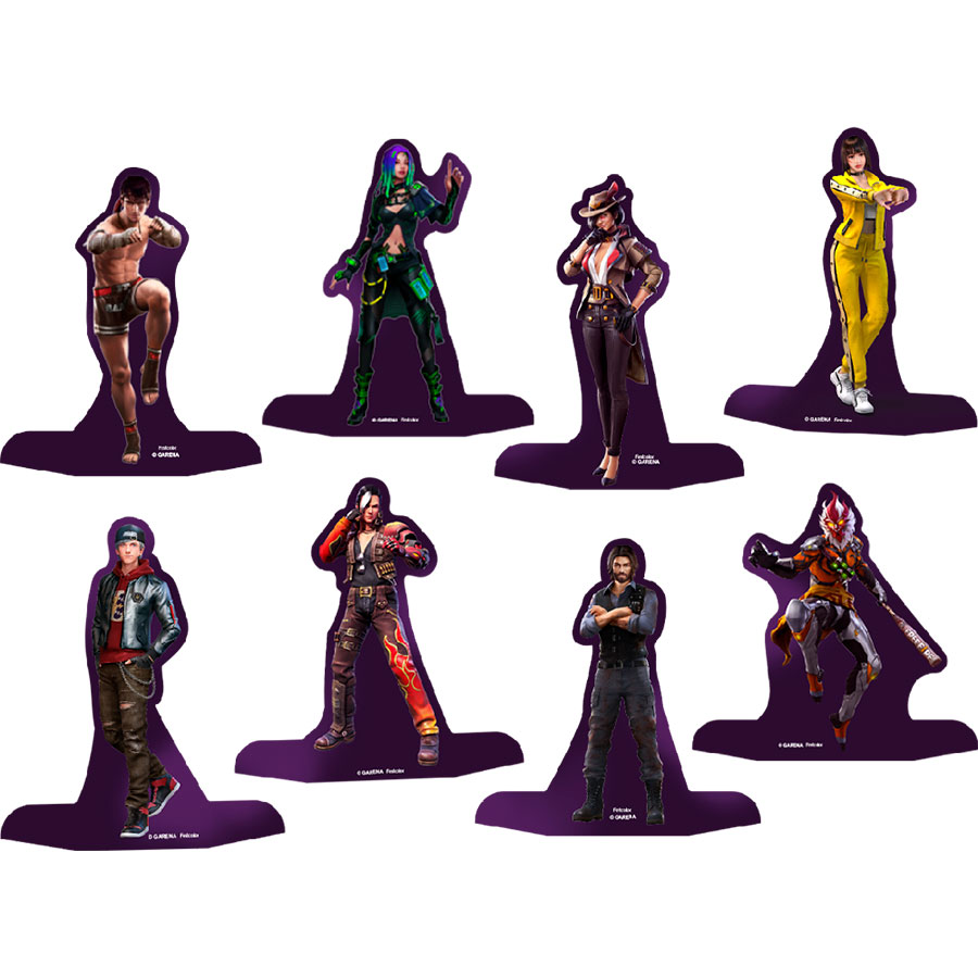 Um pacote contendo 8 unidades de decoração de mesa com o tema Free Fire