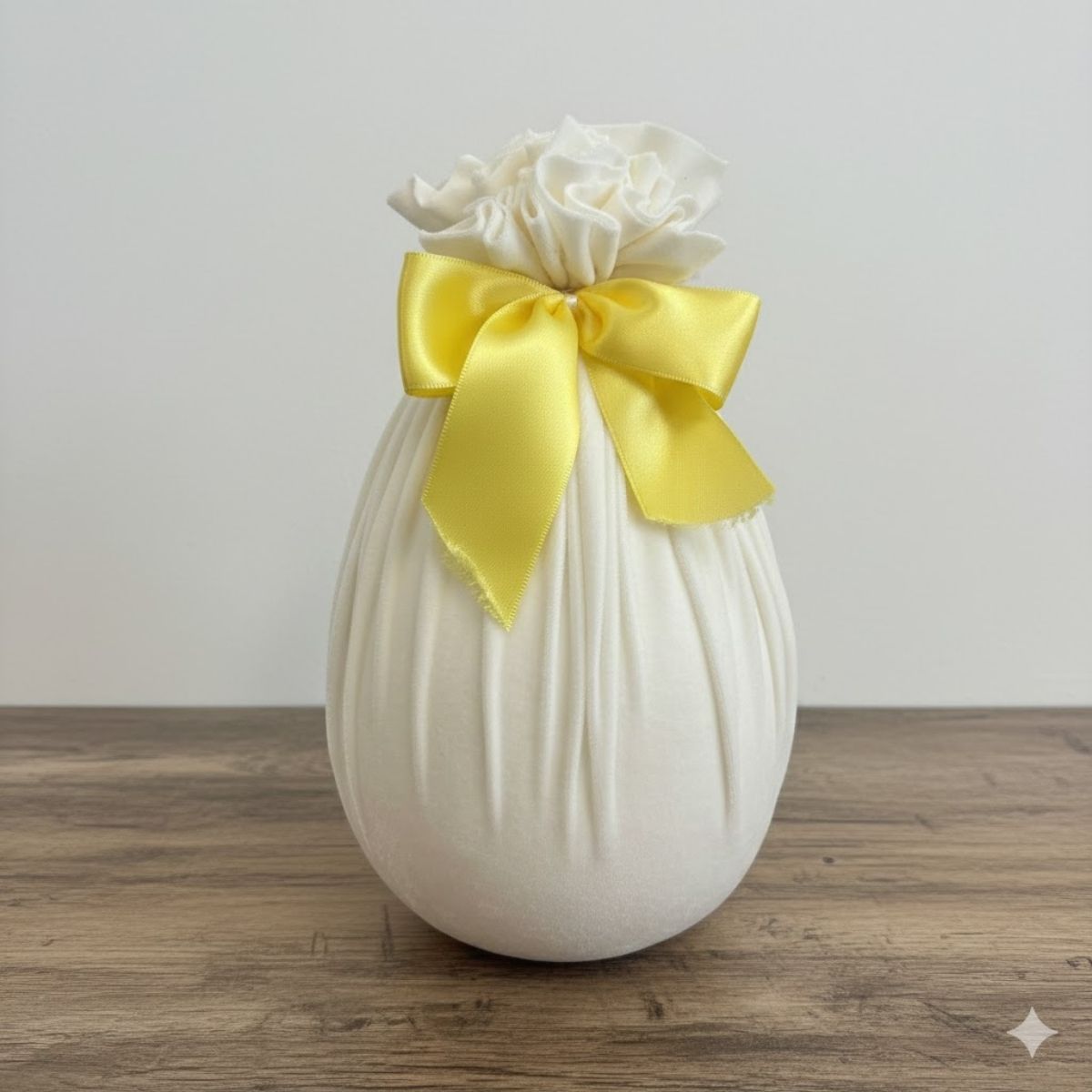 Perfeito para mesas postas, cantinhos temáticos, aparadores e vitrines, esse ovo decorativo funciona como ponto de luz na composição, trazendo sensação de leveza e harmonia. Use sozinho para uma decoração minimalista ou combine com outros tons pastéis para criar um cenário encantador de Páscoa — seja em casa, no trabalho ou em produções fotográficas.