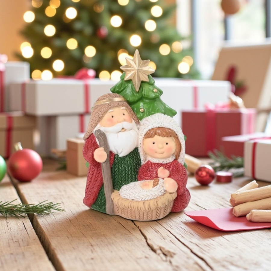 Indicada para presépios, aparadores, mesas ou prateleiras, essa peça é ideal para quem deseja decorar com delicadeza sem abrir mão do simbolismo do Natal. Além de embelezar o ambiente, transmite mensagens de união, amor e celebração, tornando a decoração ainda mais acolhedora.