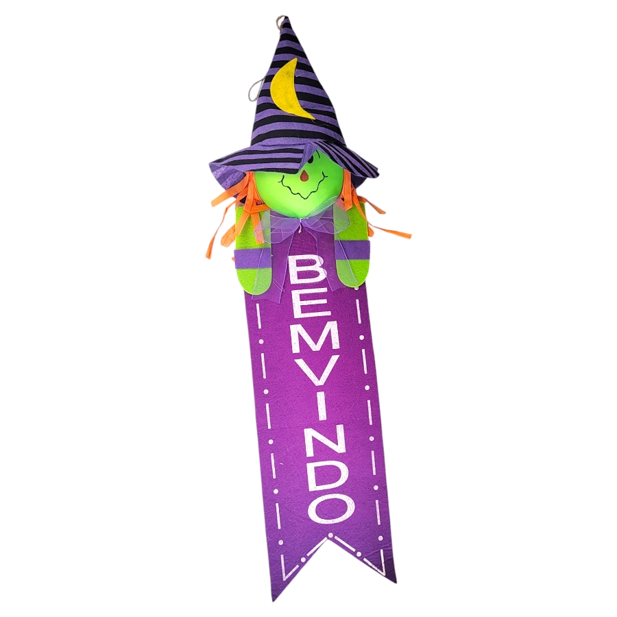O Enfeite de Pendurar de Halloween com Faixa "Bem Vindo" é o item ideal para receber seus convidados em grande estilo nesta temporada assustadora. Com uma faixa destacada com a frase "Bem Vindo", esta combinação combina o clima de Halloween com um toque de hospitalidade. Fácil de pendurar, ele pode ser usado em portas, paredes ou como parte de um cenário temático, trazendo um ar macabro e divertido para a decoração de sua festa.