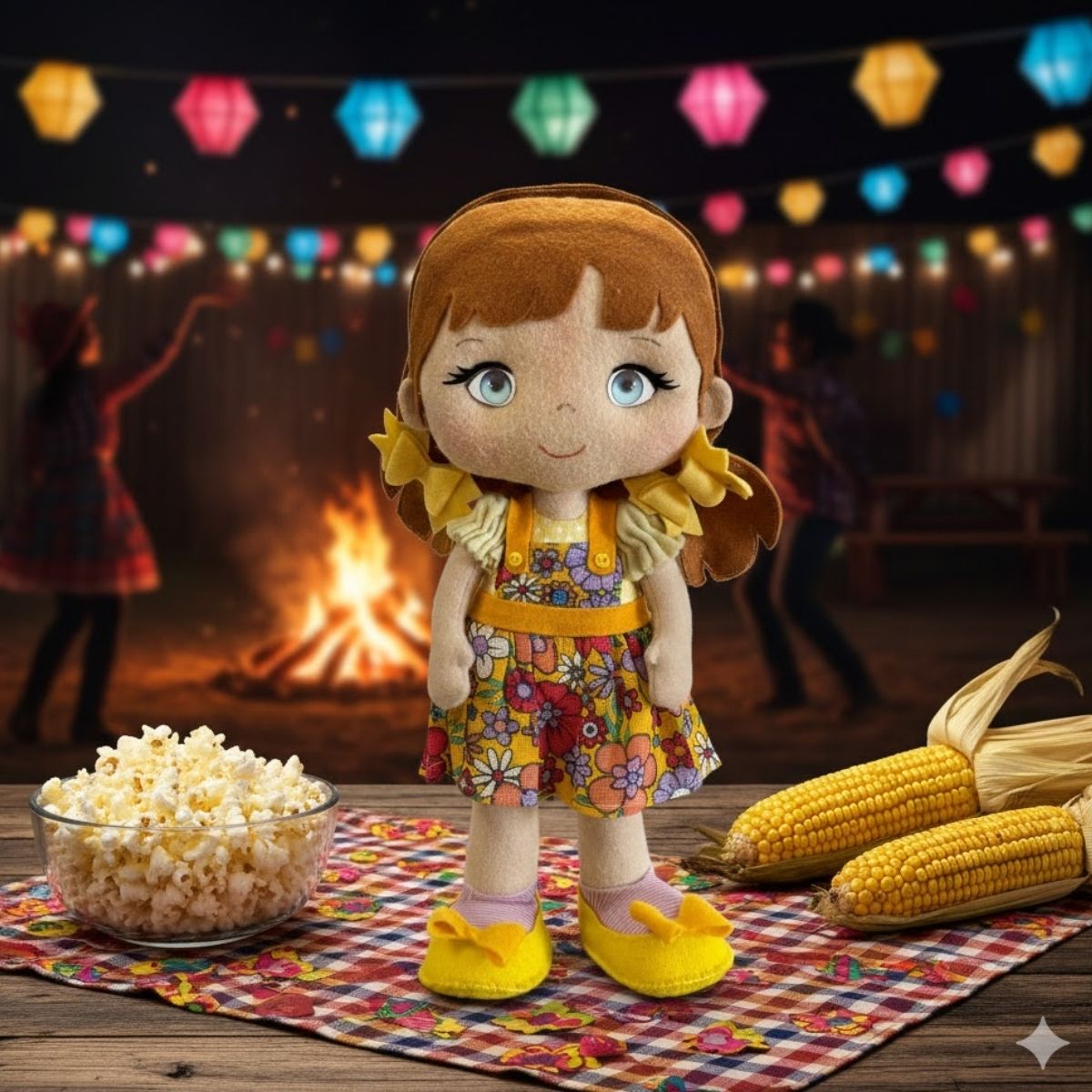 Use o enfeite de festa junina como destaque em mesas decoradas, aparadores ou prateleiras. Combine com bandeirinhas, balões, espantalhos e outros elementos juninos para uma decoração completa. Também é uma excelente opção para escolas, festas temáticas e espaços comerciais.