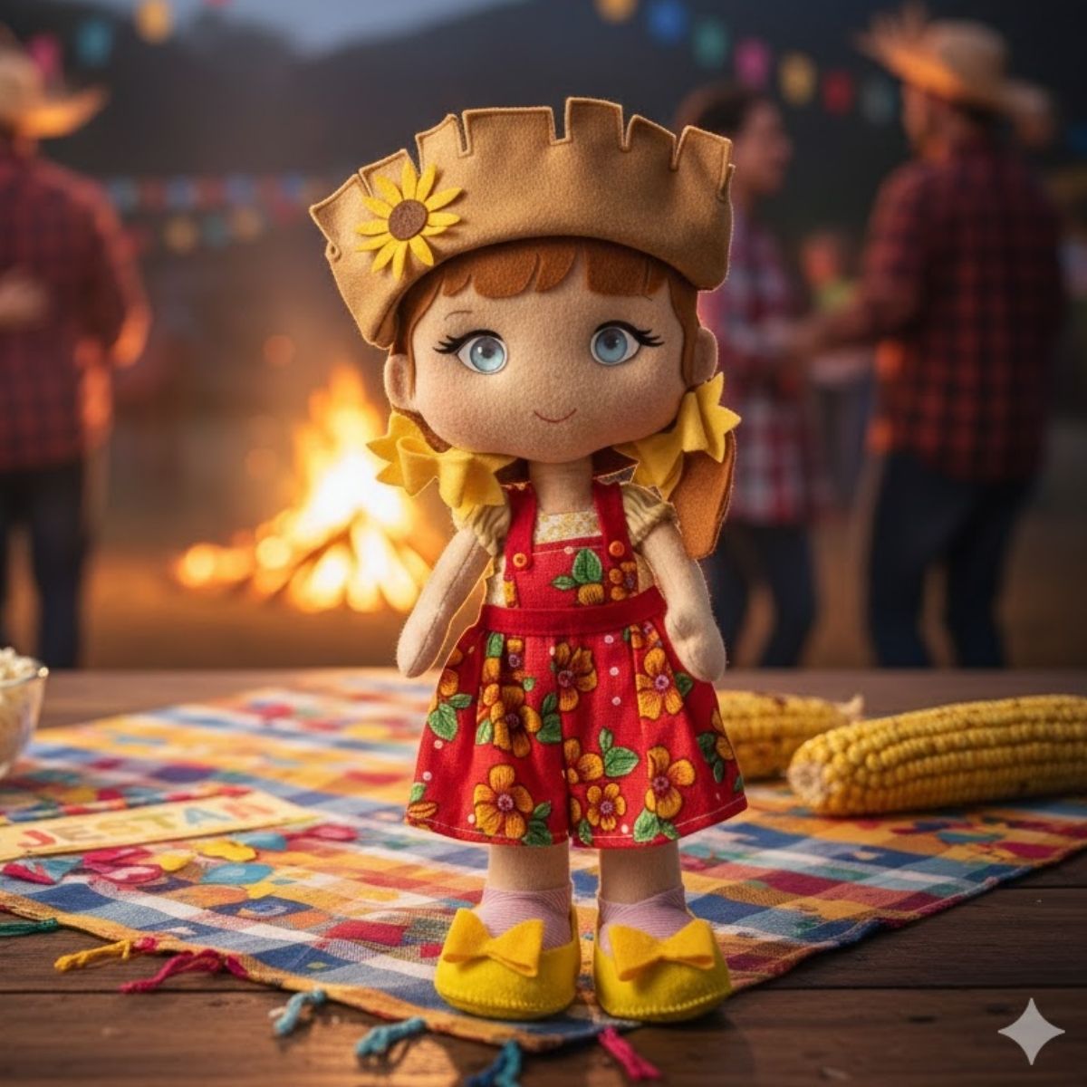 Use o enfeite de festa junina como destaque em mesas decoradas, aparadores ou prateleiras. Combine com bandeirinhas, balões, chapéus de palha, espantalhos e outros elementos juninos para uma decoração completa. Também é uma ótima opção para escolas, festas temáticas e espaços comerciais.