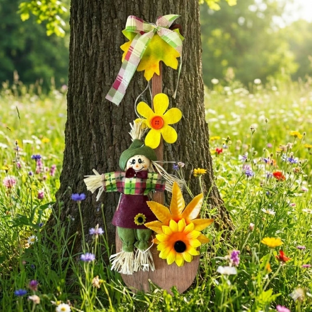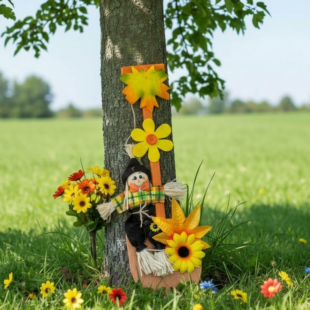 O Enfeite Decorativo de Festa Junina no modelo vaso com espantalho é uma peça cheia de charme para compor a decoração típica junina. Apesar do nome, o formato lembra a silhueta de um vaso, criando um visual decorativo diferenciado. A peça conta com flores amarelas aplicadas, um laço decorativo e uma espantalha rica em detalhes, trazendo personalidade à composição.
