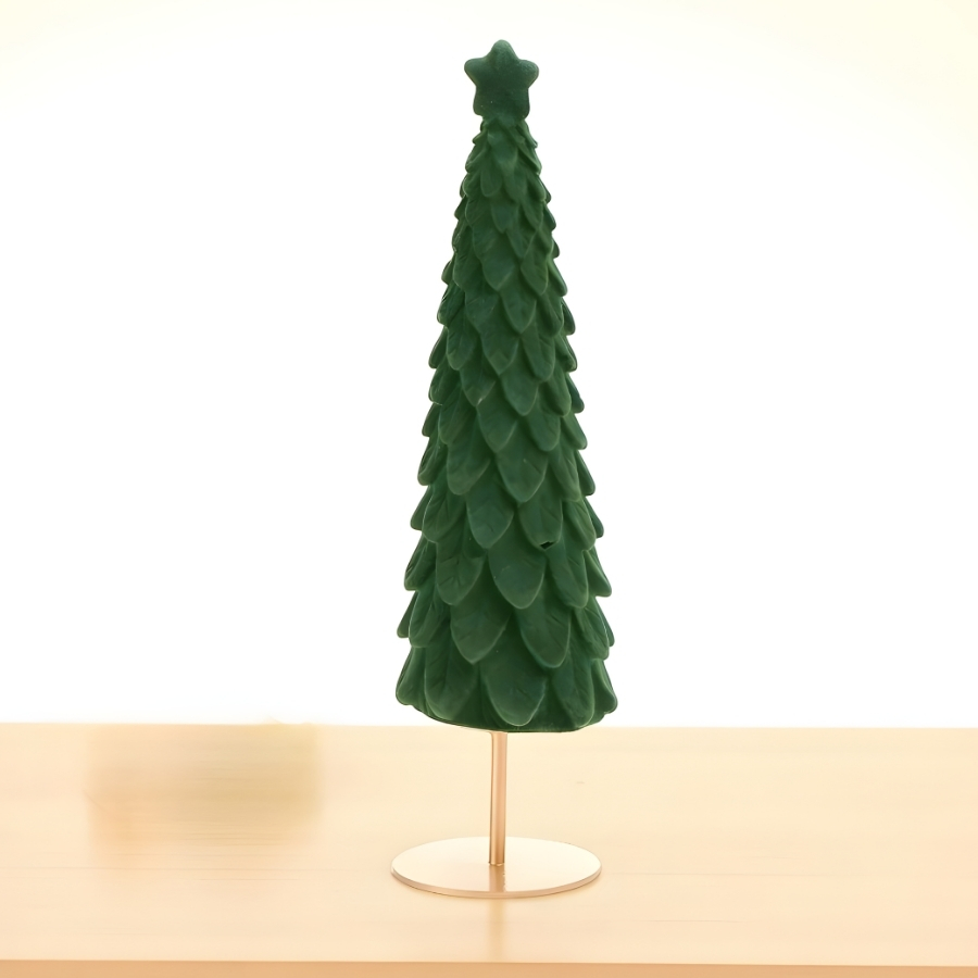Árvore decorativa de Natal em formato de pinheiro, com estrela no topo e base dourada. Medidas: 23,5x7cm. Produto ideal para mesas, estantes ou ambientes decorativos, proporcionando charme e espírito natalino.