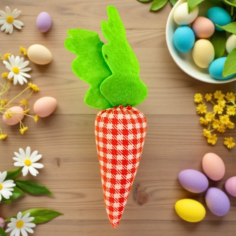 O Enfeite Decorativo de Páscoa – Cenoura Xadrez Branco, Laranja e Verde é perfeito para quem deseja trazer charme e alegria à decoração pascal. Com 18x6x6cm, o padrão xadrez colorido adiciona um toque divertido e elegante, ideal para mesas, cestas, arranjos ou lembrancinhas, deixando qualquer ambiente mais festivo e acolhedor.